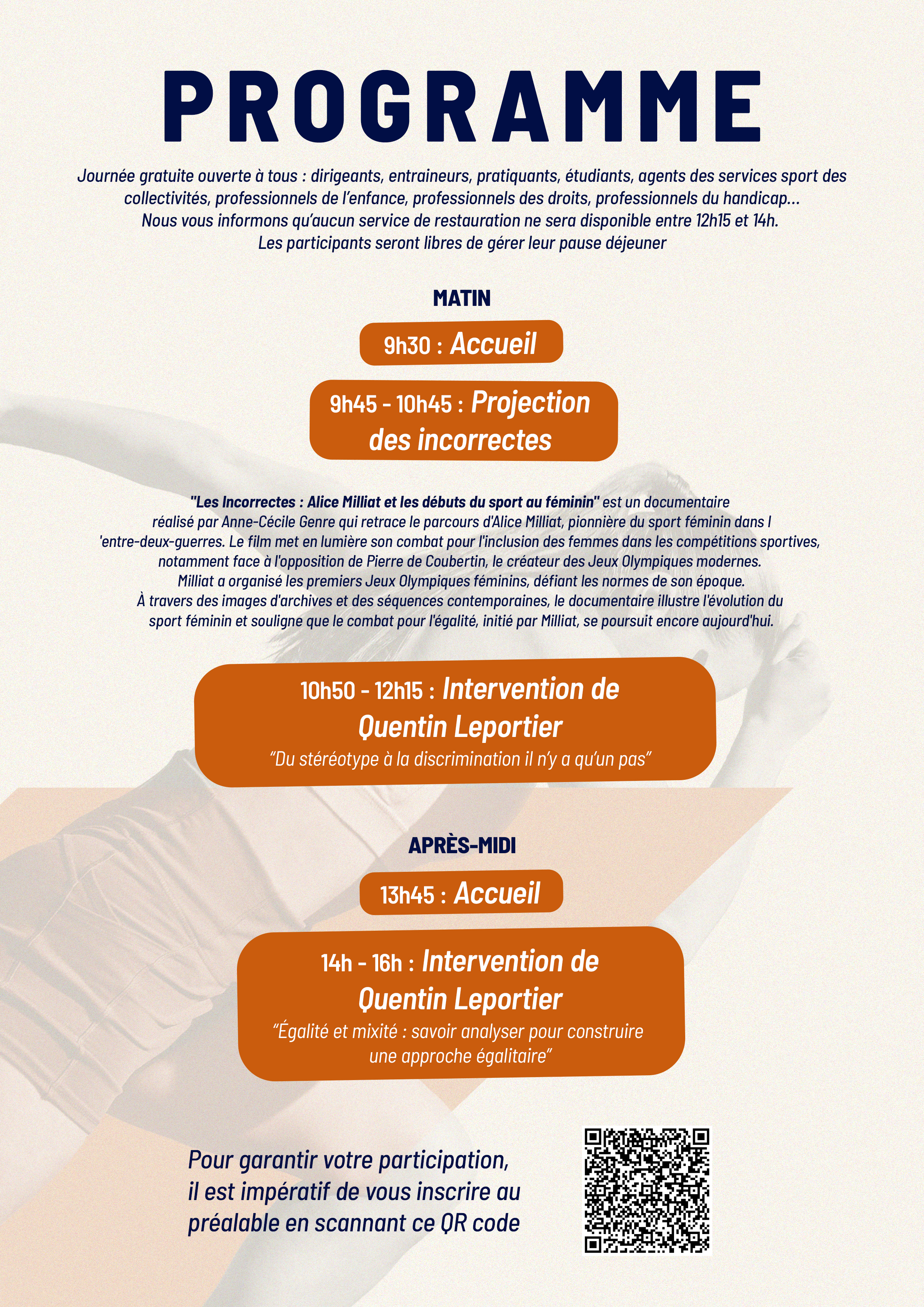 Vous qui êtes engagés dans le sport (dirigeants, bénévoles, athlètes, juges/arbitres, professionnels…) ou membres de la communauté éducative en milieu scolaire, cette journée vous permettra d’explorer les enjeux du sport féminin à travers l’histoire et de discuter des avancées réalisées grâce au combat d’Alice Milliat et des acteurs engagés sur cette thématique.